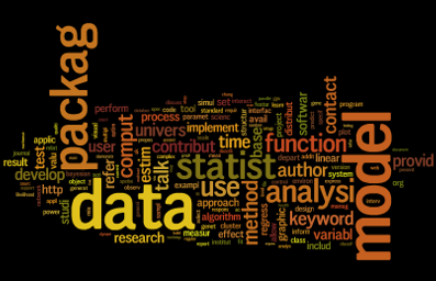 Dentro de un mes tendrá lugar la conferencia internacional de usuarios de R, useR!, en Warwick, R.U. A partir del documento que resume las ponencias, usando el paquete tm de R y Wordle para la parte artística, he creado la siguiente nube de palabras: