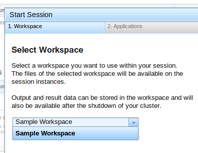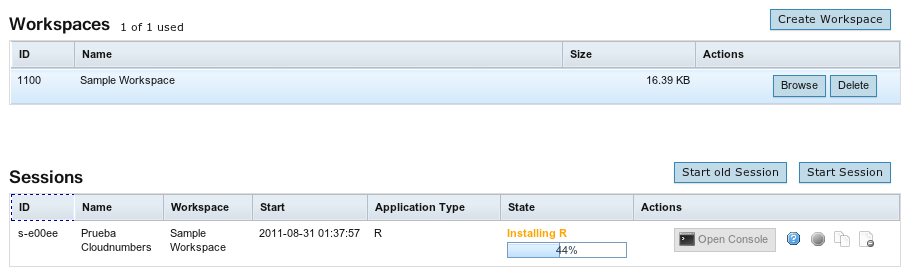 Una vez subidos el código y los datos iniciales necesarios, creo una sesión. Para ello, primero le asocio un workspace: