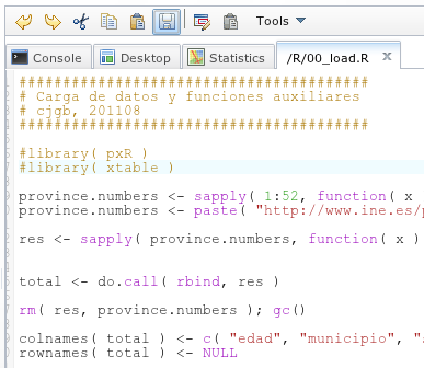 Una de ellas es la de la consola, donde puede ejecutar R. Los paquetes elegidos de antemano están disponibles.