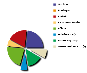 En efecto, cuando la demanda es baja (y a esas horas de la madrugada, especialmente en domingo, el consumo tiene sus valles), las centrales renovables son capaces de cubrir un porcentaje mayor de ella y las contaminantes, las que queman carbón o gas, trabajan a medio ídem.