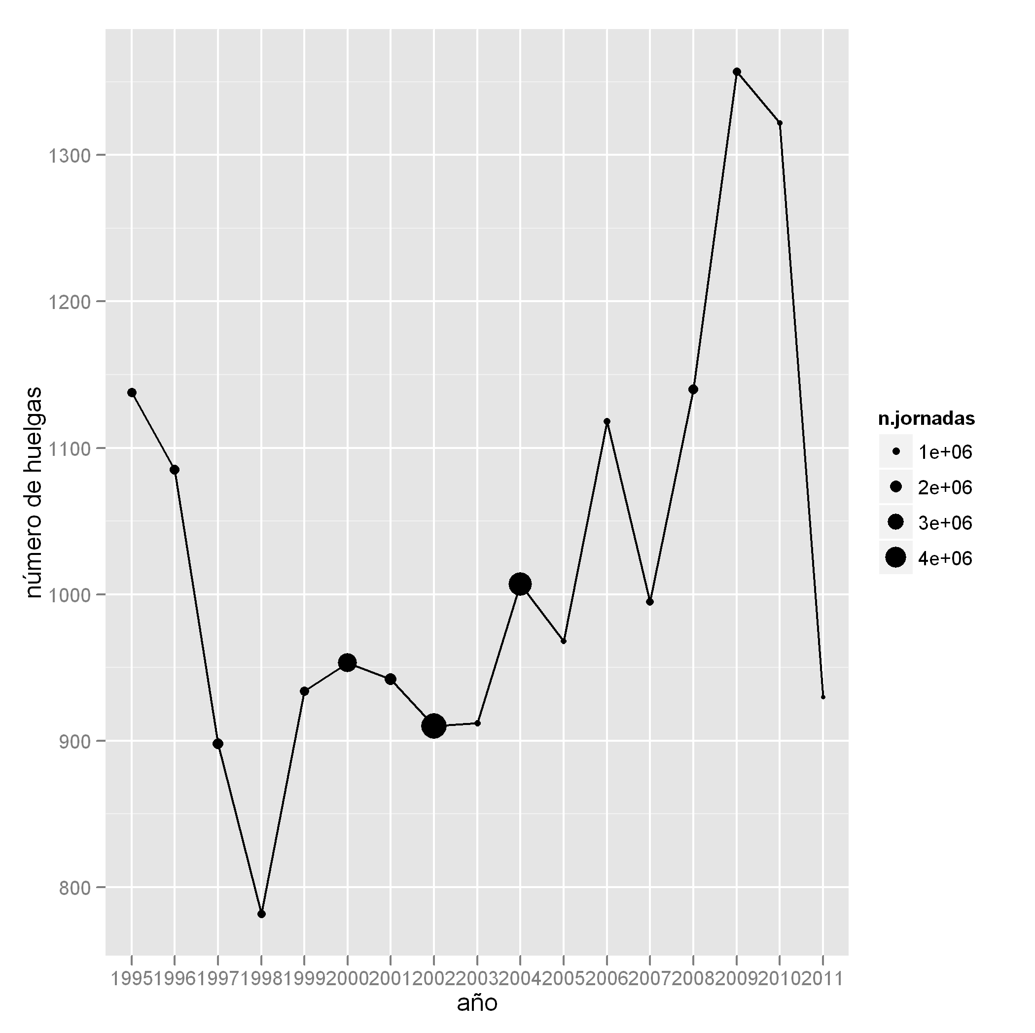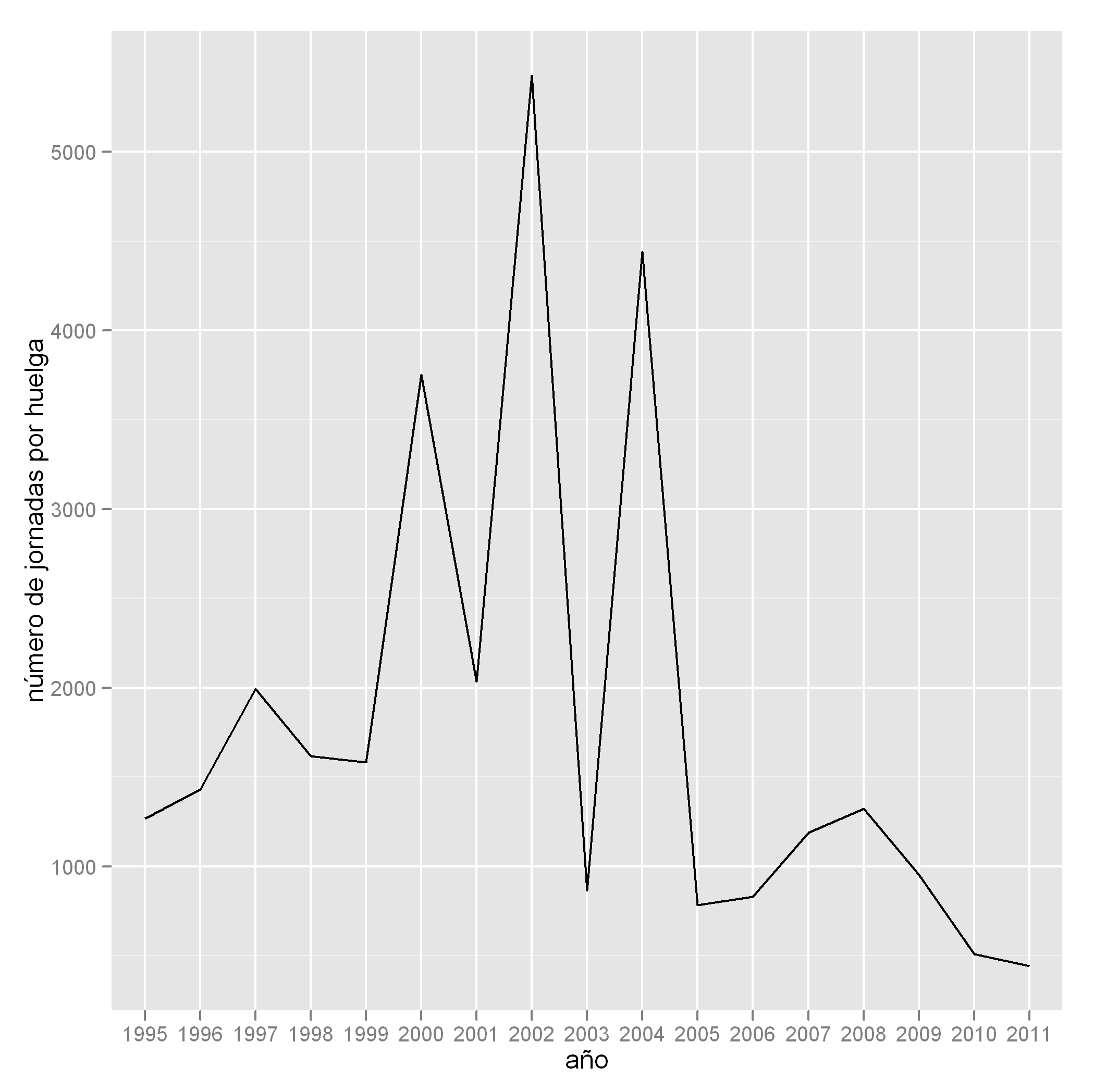 p <- p + scale_x_discrete("año") + scale_y_continuous("número de jornadas por huelga")