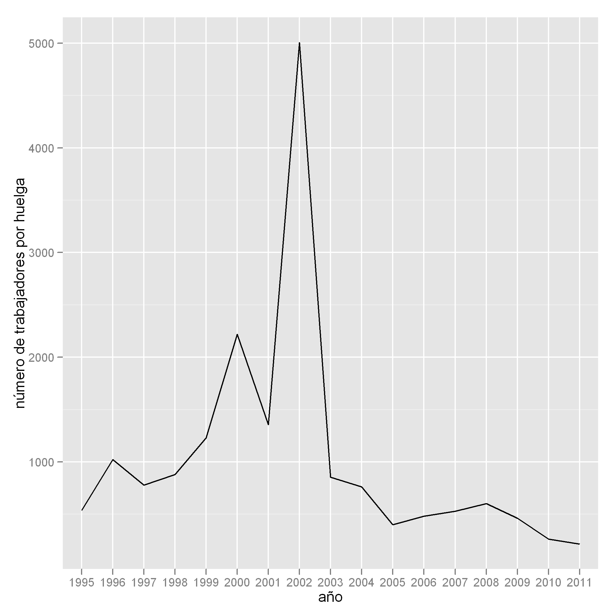 p <- p + scale_x_discrete("año") + scale_y_continuous("número de trabajadores por huelga")