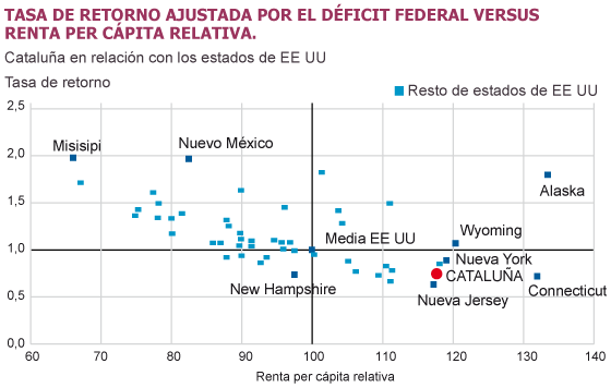 El artículo en cuestión responde a otro anterior de Germà Bel según el cual el déficit fiscal de Cataluña representa una singularidad impensable en ningún otro tipo de país. Responde Ángel de la Fuente con el siguiente gráfico: