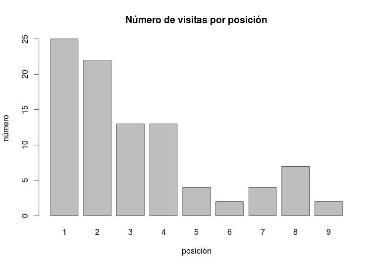 Finalmente, presento una gráfica del número de visitas según la posición (truncada en 10):