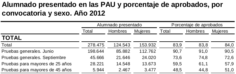 el porcentaje de hombres aprobados superó al de mujeres en cada categoría (excepto en la muy pequeña de mayores de 45 años). Pero, sin embargo, el porcentaje de aprobados entre las mujeres supera (aunque por la mínina) al de los hombres.