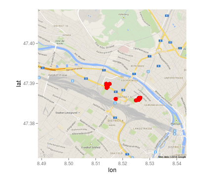 En Zúrich tengo punticos en casa, en el trabajo y uno en la estación de tren. Supongo que camino del aeropuerto. He estado en algún sitio más con la bici, pero, al parecer, desconectado.