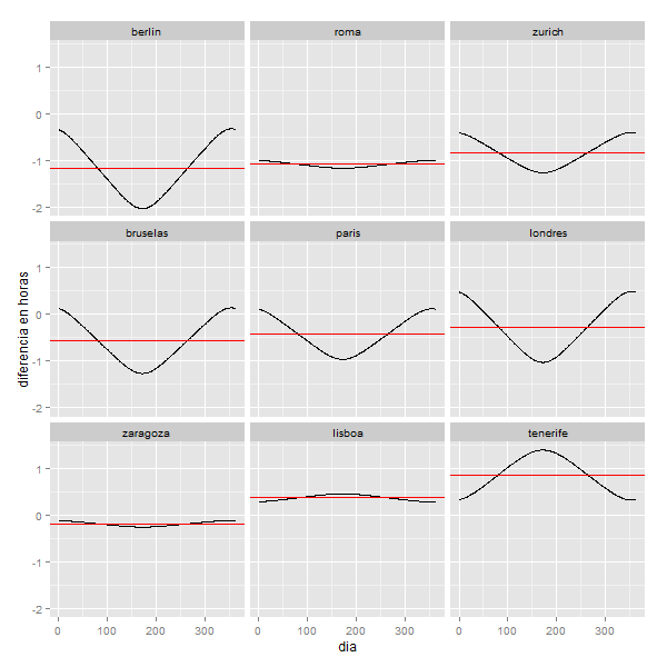 geom_hline(aes(yintercept = media), medias, col = "red") + ylab("diferencia en horas")Y bueno, como todo el mundo tiene comentarios respecto a lo de los horarios y no no soy la excepción, van ahí los míos: