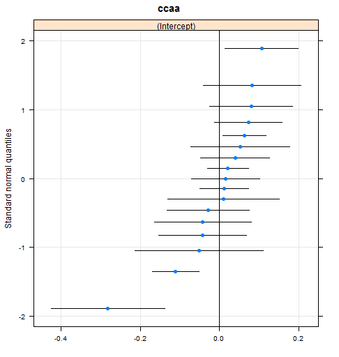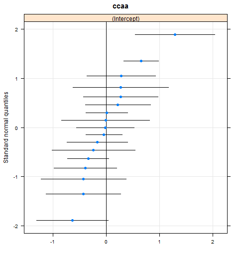 qqmath(ranef(mod3, condVar = TRUE))para obtener