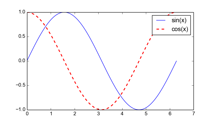 python.exec("plt.legend(('sin(x)', 'cos(x)'))")