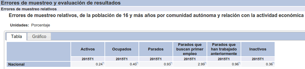 Es decir, el intervalo de confianza para la cifra de parados tendría una anchura como de 100k sujetos. Obviamente, eso impide calcular variaciones de un orden de magnitud menor.