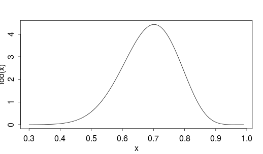 foo <- function(x) dbeta(x, 18.14, 8.27)