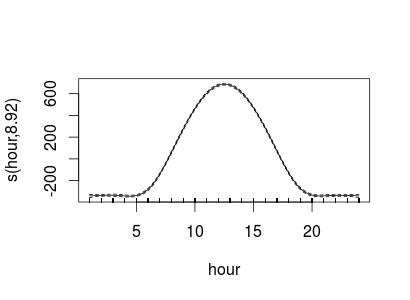 mi.gam <- gam(irradiation ~ s(hour, bs = "cr"), data = irradiation)