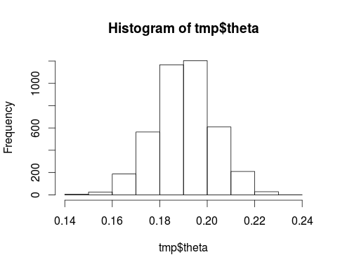 sin mayores complicaciones (ni teóricas ni prácticas). Además, como ventaja adicional, uno siempre puede incluir la información previamente conocida sobre la distribución de $\theta$ en el lugar correspondiente en el código anterior.