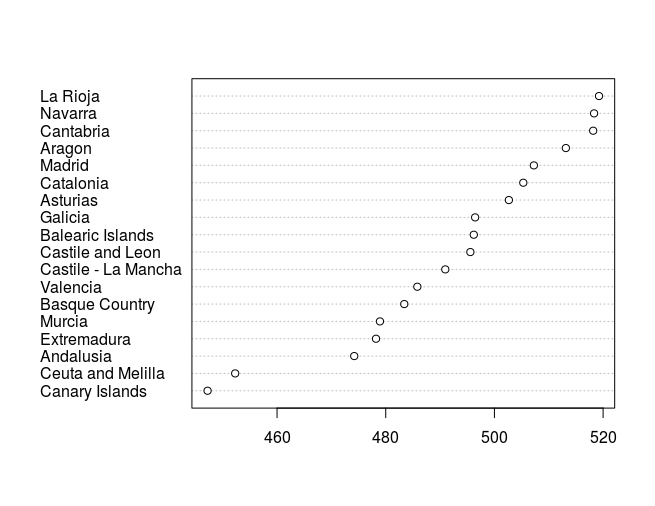 dotchart(sort(tapply(dat$target, dat$CCAA, mean)))El gráfico resultante es desconcertante: