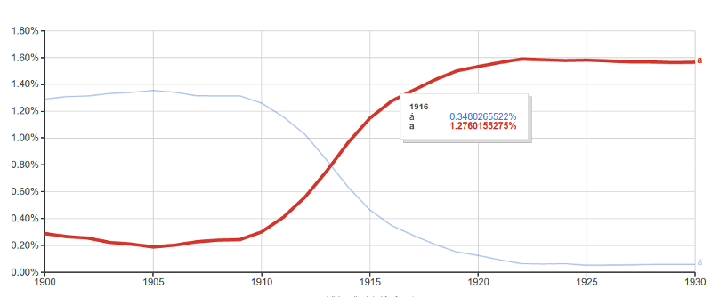 Buscad otras parejas con y sin la tilde demodé y veréis más gráficos de tenaza como el anterior.