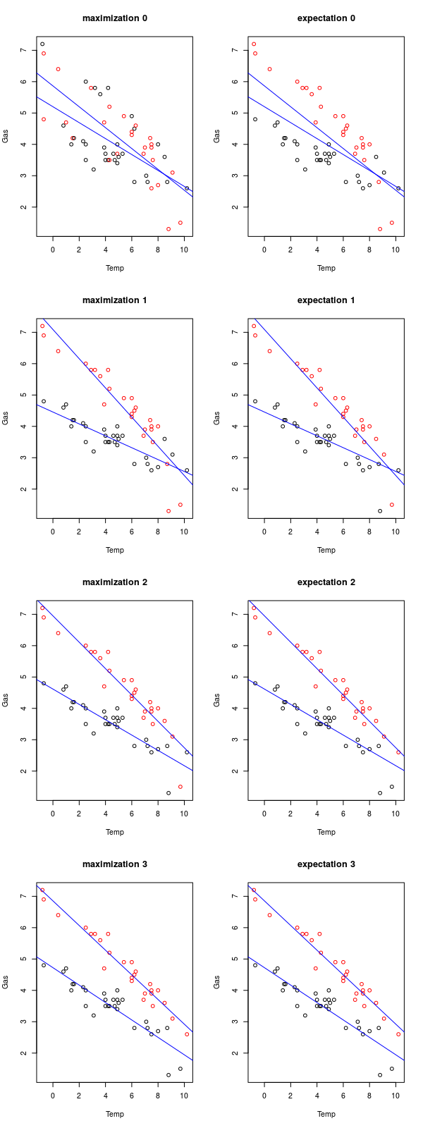 plot(dat, col = prev.cluster.id, main = paste0("maximization ", i))