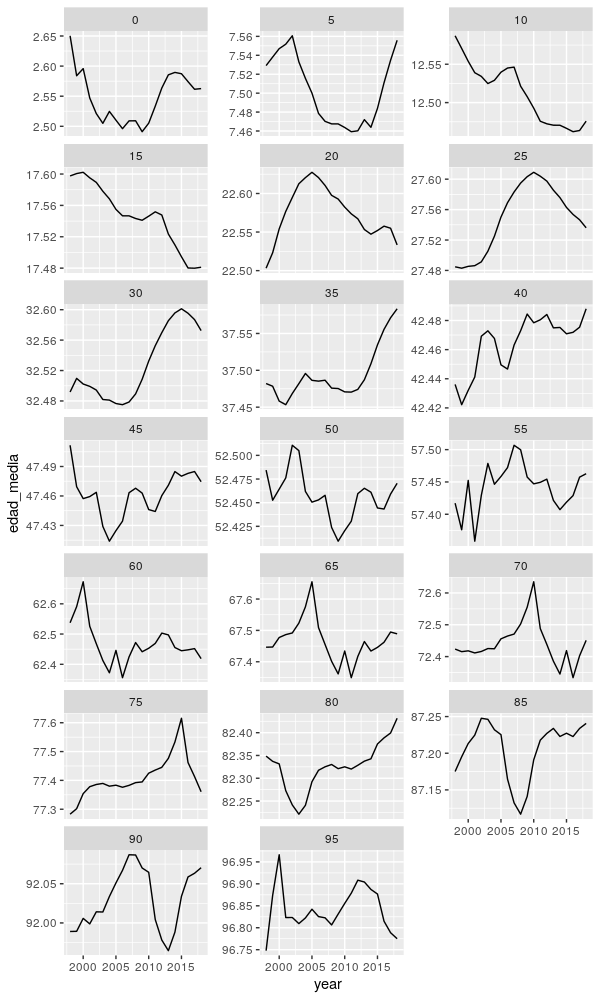 La pregunta es relevante porque en demografía, epidemiología y otras disciplinas entre las que no se suele contar la economía, se suele agrupar la población en grupos de edad (y/u otras variables relevantes). Son habituales los grupos de edad quinquenales y la pregunta es: ¿son homogéneos dichos grupos de edad a lo largo del tiempo?