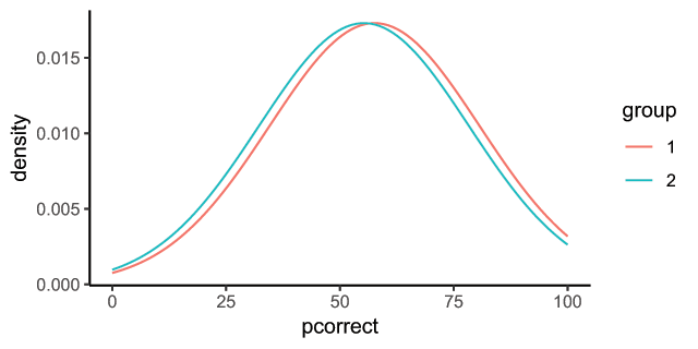 bmod_math <- lm(pcorrect ~ group, data = MathExam)para obtener una distribución de la nota media por grupo descrita bien