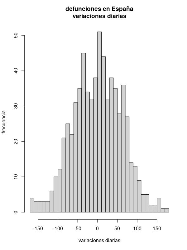 El modelo natural para la mortalidad (en primera aproximación) es el de Poisson, que, como todo el mundo sabe, tiene la varianza igual a la media. Las variaciones diarias deberían estar típicamente en el rango de $\pm 2\sigma$ simplemente porque sí.