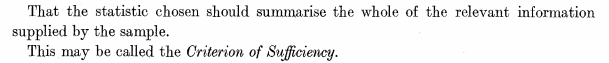 En esta entrada abundo en una que escribí hace ocho años: Conceptos estadísticos que desaprender: la suficiencia. Lo hago porque casualmente he tropezado con su origen y justificación primera, el afamado artículo On the Mathematical Foundations of Theoretical Statistics del nunca suficientemente encarecido R.A. Fisher.