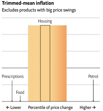 La pregunta que se formula The Economist para el caso concreto de la inflación y que nos podemos plantear más generalmente en estadística es: ¿cómo resumir esa distribución entera en una única cifra que tenga sentido? (Lo cual debería comenzar resolviendo qué significa tener sentido, obviamente.)
