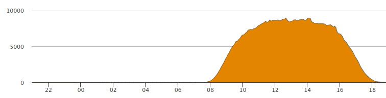 Es la curva de producción fotovoltaica en España —más propiamente, la península— durante el mismo día.