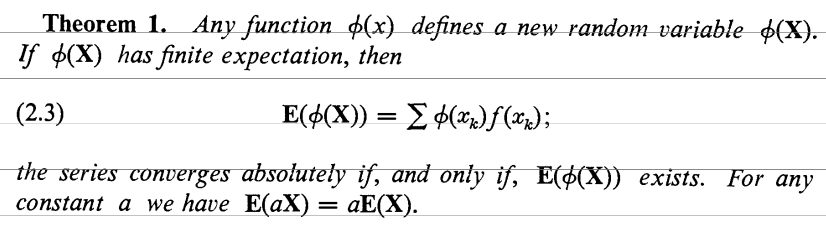 Es innegable que el rótulo ley del estadístico inconsciente llama la atención. Trata sobre lo siguiente: si la variable aleatoria es $X$ y la medida es $P_X$, entonces, su esperanza se define como