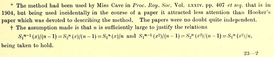 Fijarsen: Student —el del test de Student que solo usan unos cuantos cavernícolas— dice que va a citar y elaborar sobre el trabajo de Mr. Hooker en lugar de el de Miss Cave (en realidad, Frances Cave-Browne-Cave) por un quítame tú de ahí esas pajas.