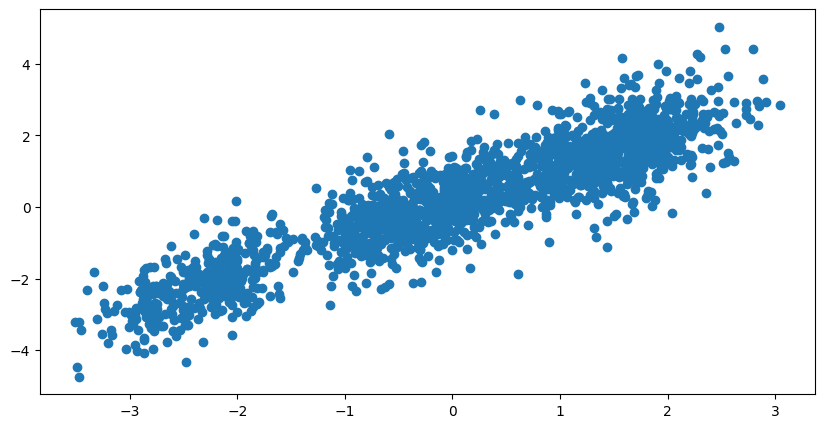 Es decir, salvo que sus prioris sean muy estrictas y las anclen en valores casi fijos, se puede vaticinar que la correlación entre las posteroris de $\mu_a$ y $\mu_d$ sea muy grande. Y, en efecto,