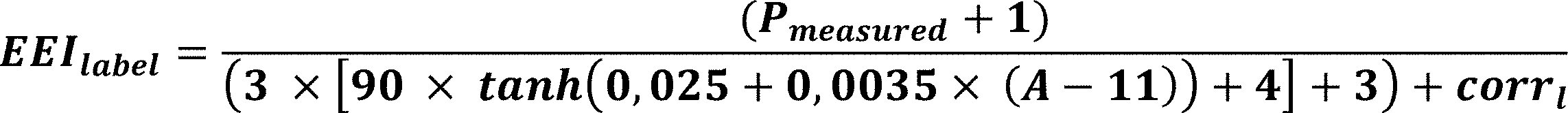 $$\text{IEE} = \frac{P + 1}{12.3 + 0.91 A},$$