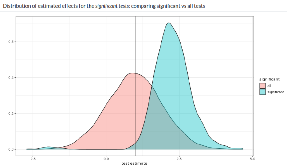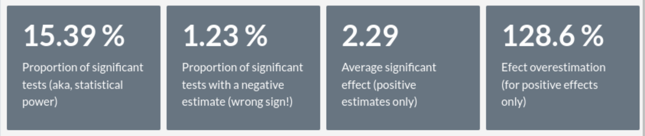 Pero, ¿qué sucede si $p < 0.05$ en contextos de baja potencia estadística? Dos cosas: