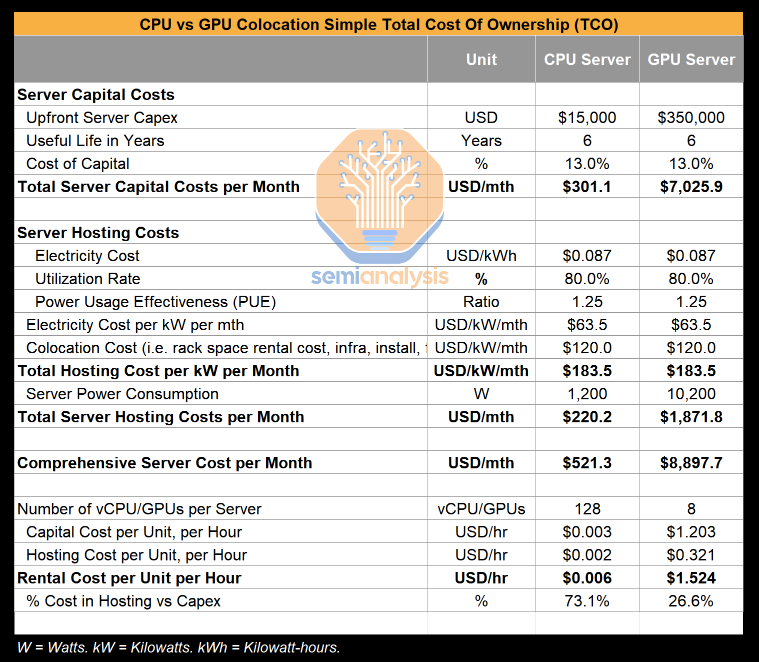 donde los costes de los servidores con GPU parecen hacer referencia a la NVIDIA HGX H100.