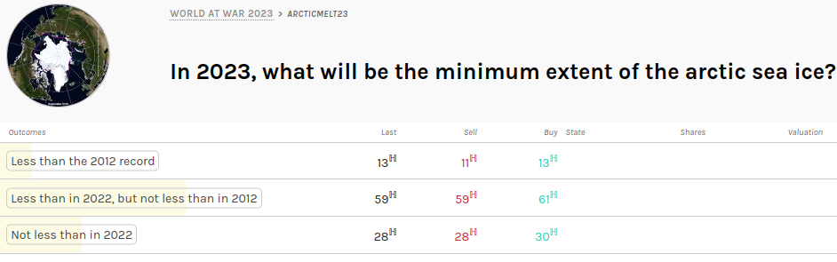 Una de mis aficiones más excusables es la de participar en el mercado de predicciones de Hypermind. Una de las preguntas que se suele plantear anualmente —y en la que, gracias a apostar contra el común/apocalíptico sentir, logré pingües beneficios el año pasado— tiene que ver con cuándo nos vamos a morir todos. De otra manera: