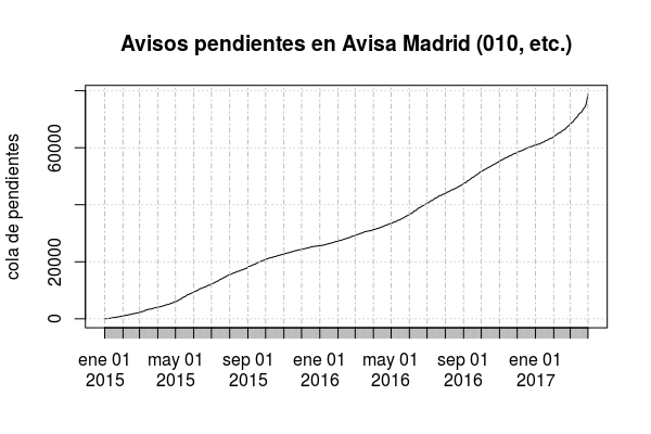 plot(tmp, main = "Avisos pendientes en Avisa Madrid (010, etc.)" ,