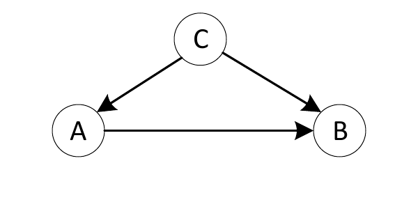 - Tanto A como B están causados por un tercer factor C.