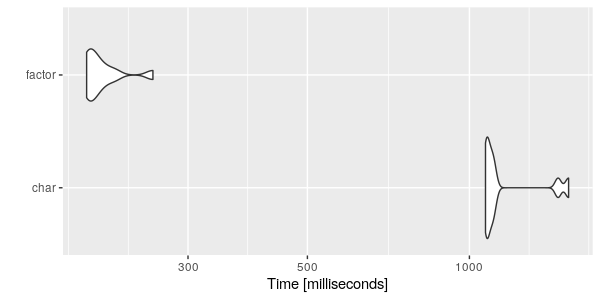 ¿No es sorprendente? De hecho, plyr es más rápido que dplyr en este caso si no se usan factores.
