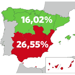 ¿Cómo se han calculado los porcentajes? Veámoslo (a partir de los datos que aparecen en el artículo); para el sur, promedia las tasas de paro de cada comunidad autónoma así: