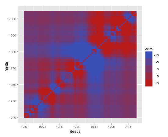 Si comparamos la rentabilidad anualizada (y deflactada) entre parejas de años, se obtiene el siguiente gráfico,