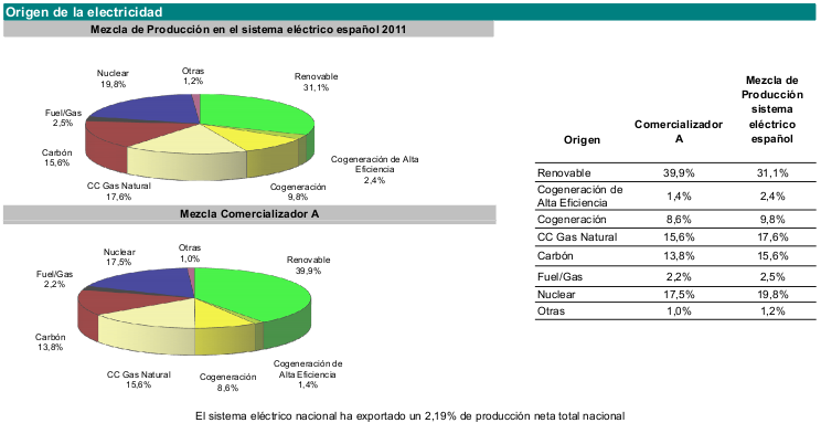 Pero lo grave es que descubro que el pequeño informe de Iberdrola, con sus tartas 3D y todo, responde al modelo establecido por la CNE, la Comisión Nacional de la Energía, tal y como figura en su portal de internet (sección Listado de Informes de Etiquetado de Electricidad). En los documentos PDF que uno puede descargarse allí, descubre el modelo (¿obligadorio?) de informe, que tras los párrafos