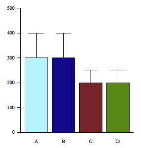 Se trata de diagramas de barras a los que se añaden unos apéndices que tratan de medir la variabilidad a la que se entiende que están sujetas aquellas. Una representación alternativa del mismo conjunto de datos ilustra el motivo por el que se desaconseja su uso: