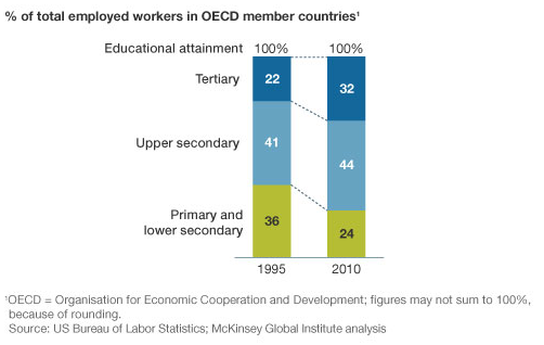 La tendencia es clara y existen motivos para pensar que seguirá en el tiempo: en las economías avanzadas descenderá la demanda de trabajadores poco cualificados y crecerá la de los cualificados. De hecho, los autores del estudio mencionan cómo