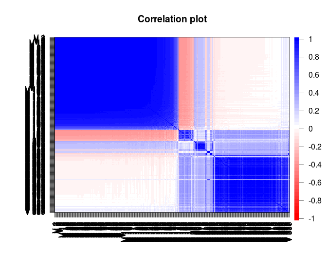 cor.plot( mat.sort(cor.votos))la matriz de correlaciones entre los sentidos de los votos de los distintos diputados,