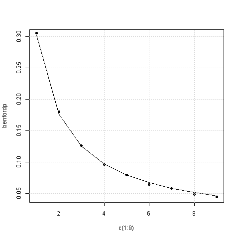 donde se aprecia cómo, efectivamente, dichas cifras parecen adecuarse a la Ley de Benford. (Hay que hacer notar, sin embargo, que el test implementado por Gregorio, el de la chi-cuadrado, arroja un p-valor de 2.2e-16, que podría llevar a algunos a cuestionar si lo que ven sus ojos es cierto y a otros a divagar sobre la aplicabilidad de pruebas de este tipo a conjuntos de datos tan grandes).