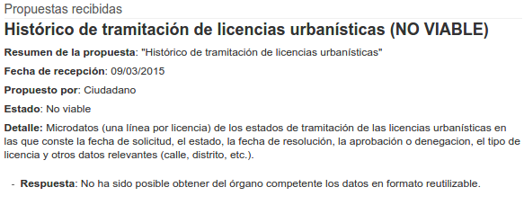 ¿Recordáis mi solicitud de datos sobre licencias urbanísticas al ayuntamiento de Madrid? Hoy me he interesado por su estado y he encontrado esto: