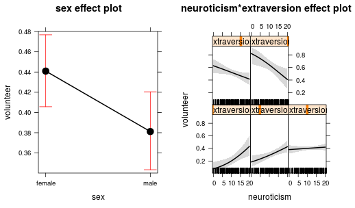 mod.cowles <- glm(volunteer ~ sex + neuroticism*extraversion,