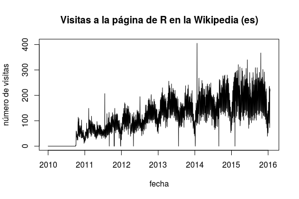 main = "Visitas a la página de R en la Wikipedia (es)",