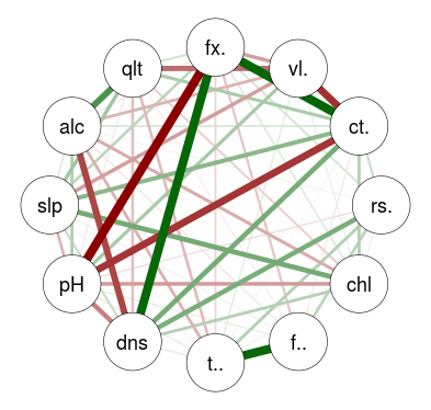 qgraph para representar grafos que son correlaciones que son vinos