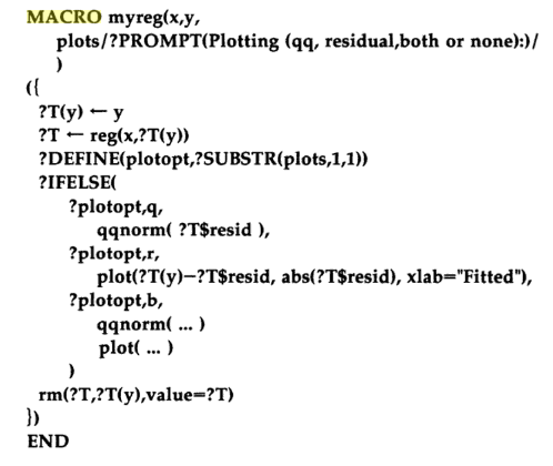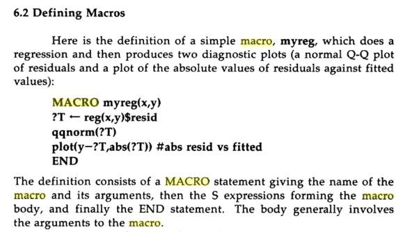 El libro permite echarle un vistazo a algunas líneas de código del S de entonces y a los gráficos generados. Y encontramos desde código que hoy todavía correría,