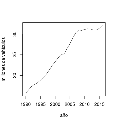 type = "l", xlab = "año", ylab = "millones de vehículos")