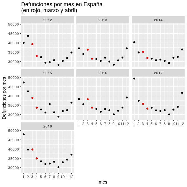 que evidencia otra cosa (nota: las defunciones no están ajustadas por la distinta duración de los meses).